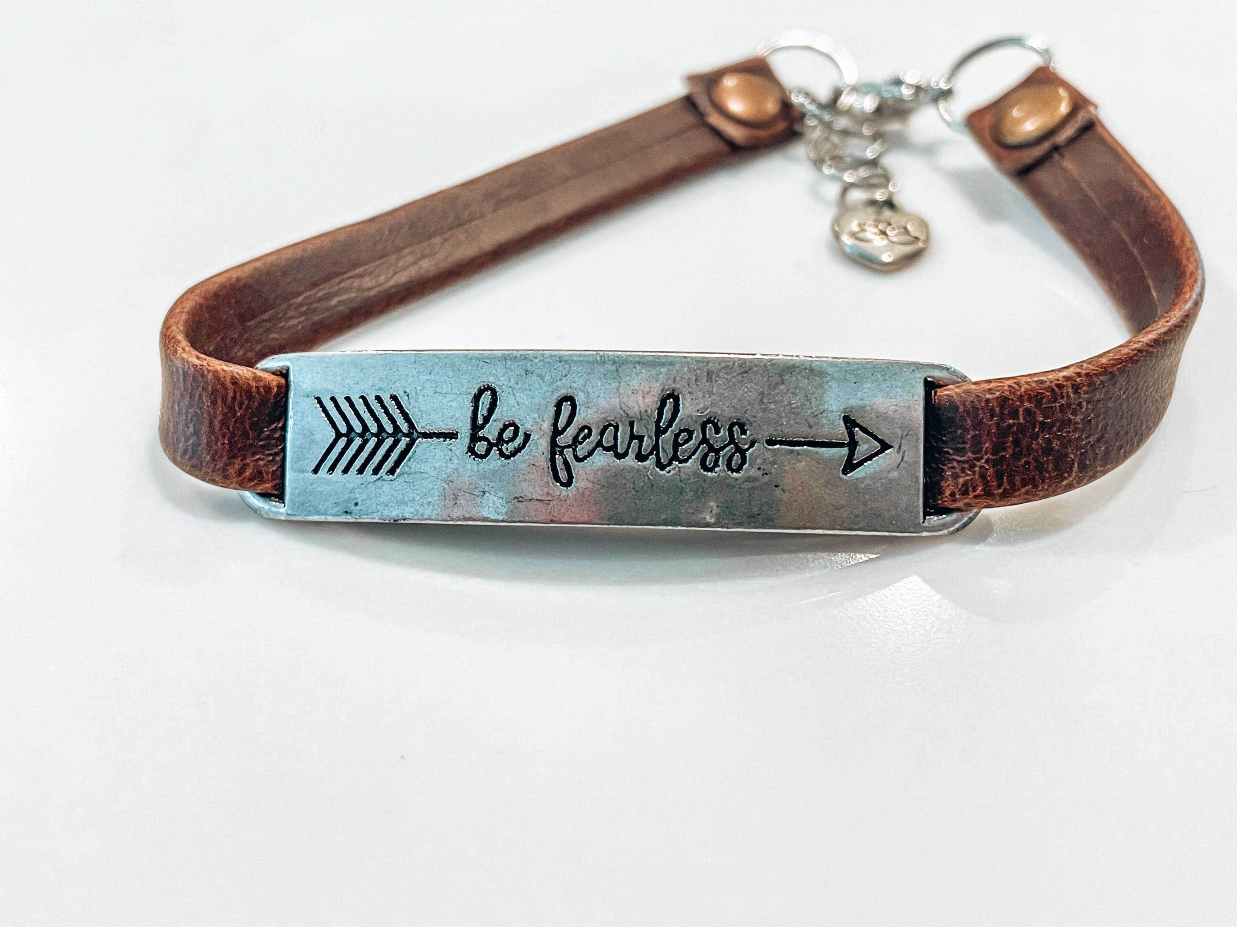 "Be Fearless" Healing Leather Bracelet