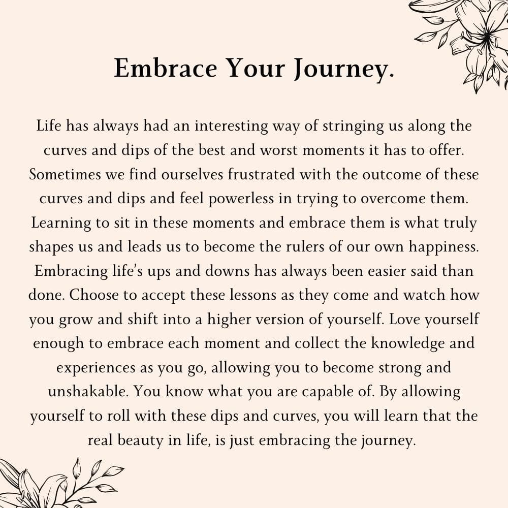 - Inscription reads "Embrace Your Journey"
