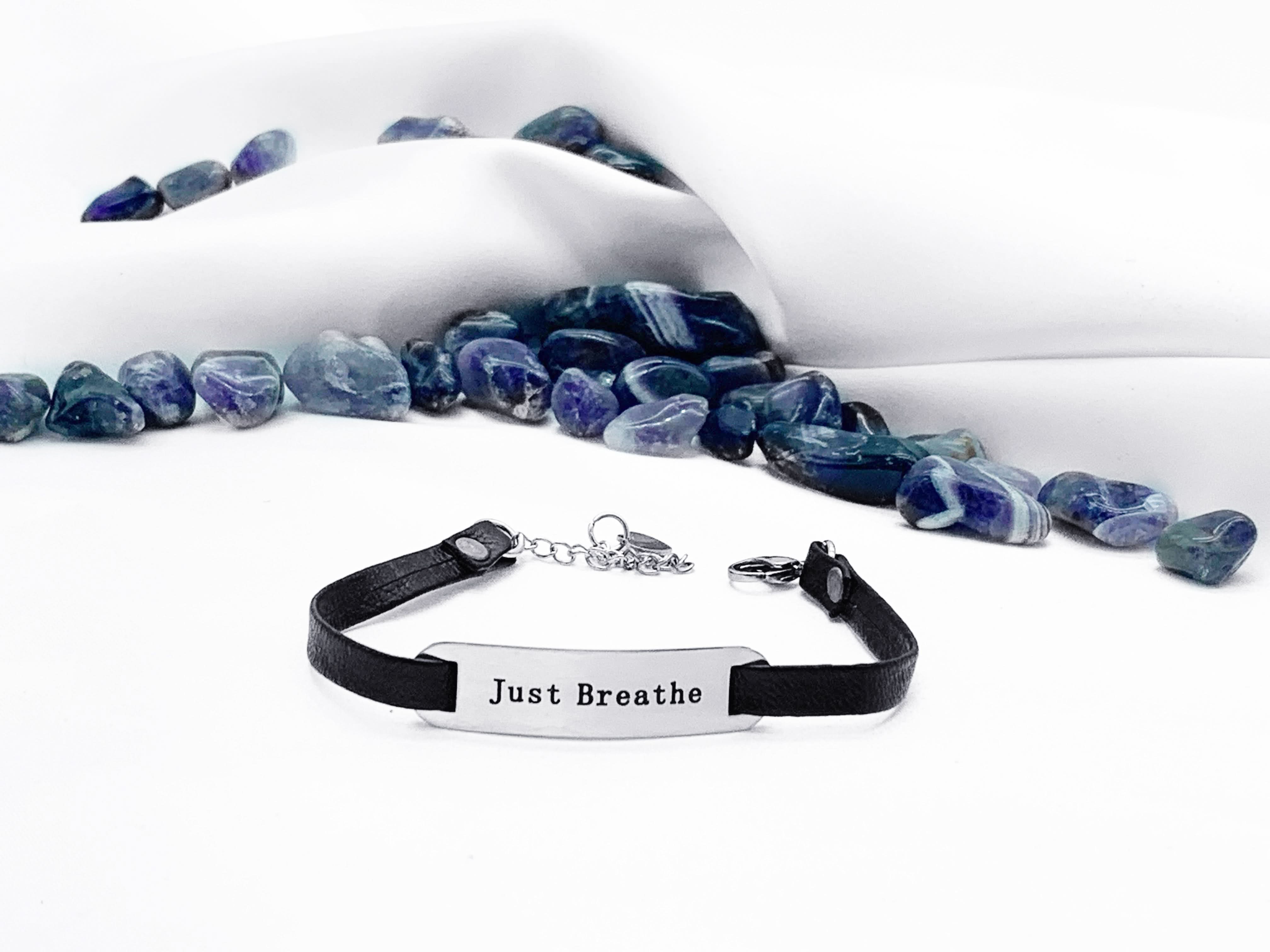 Introducing our new "Just Breathe" leather bracelet - the perfect accessory for anyone who wants to stay calm and centered, no matter what life throws their way.